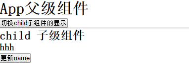 <template> <h1>App父级组件</h1> <button @click="childShow = !childShow">切换child子组件的显示</button> <hr /> <child v-if="childShow" /> </template>