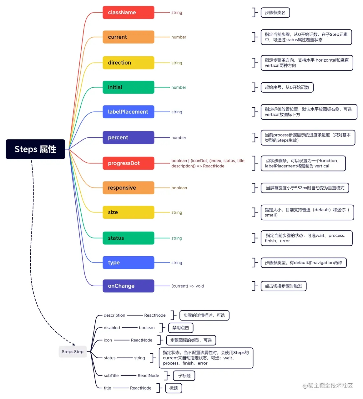 antd 中的步骤条样式丰富,可以通过设置 Steps 和 Step 的属性来产生不同的 步骤条 样式,详细的这里我进行一个整理: