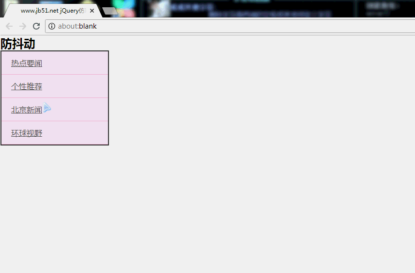 本文实例讲述了jQuery实现仿京东防抖动菜单效果。分享给大家供大家参考,具体如下: