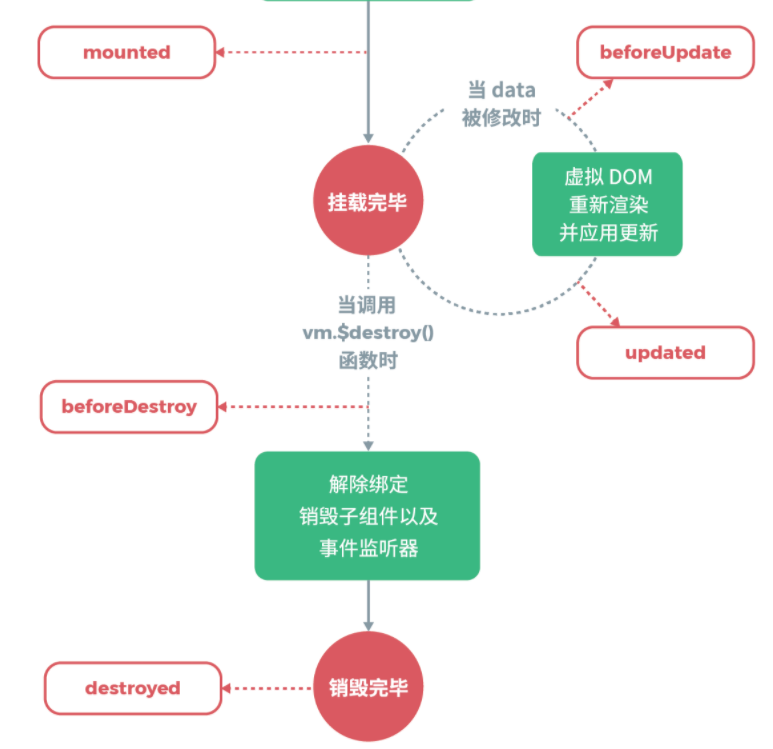 数据更新时调用,发生在虚拟 DOM 打补丁之前。这里适合在更新之前访问现有的 DOM,比如手动移除已添加的事件监听器。