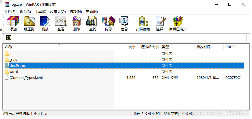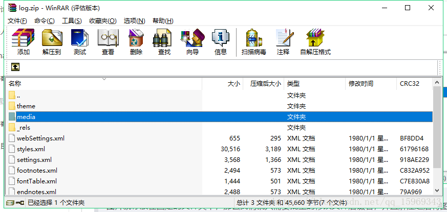 在网上查找了半天,基本都是提取word中文字的,没有找到可以把word中的图片提取出来的方法。一个巧合的情况下,发现将word的后缀名改为zip,然后解压该zip,可以看到原来word是这样存储的: