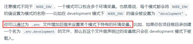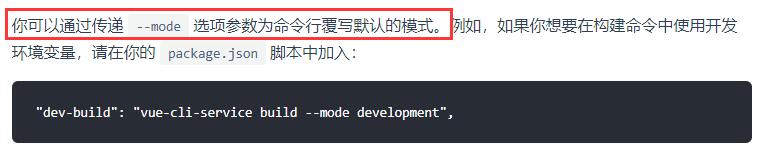 在vue-cli构建的项目中,默认有3种模式,如下图: