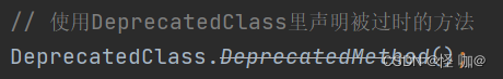 @Deprecated:被标注过的方法,调用就会出现横线,表示不建议再继续使用,但是还能用!