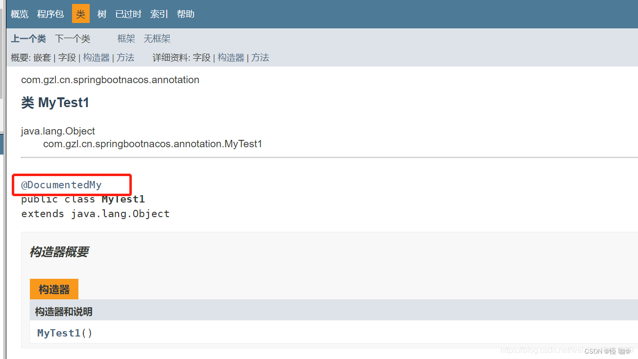 5.查看我们使用自定义注解的类,会发现他文档上面会展示这个自定义注解!