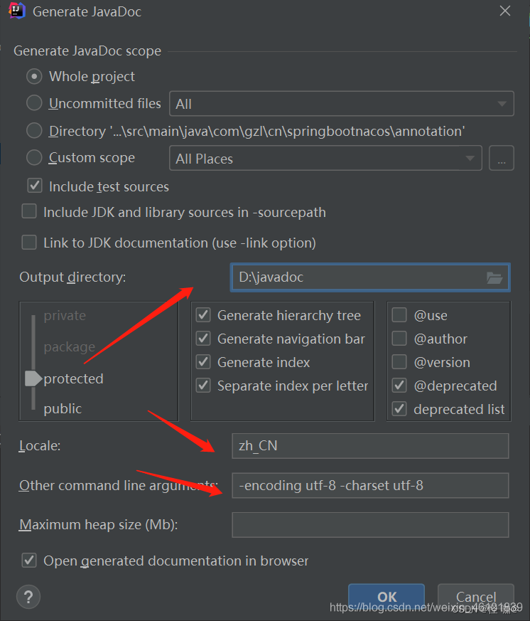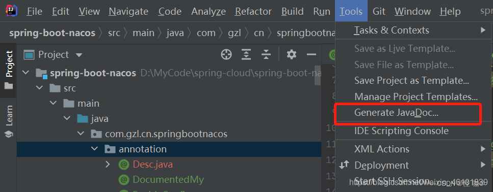 生成javadoc文档有两种方式,一种是直接基于javadoc命令,一种是ide提供的!当然实际在开发当中我们很少会使用这个文档!除非我们要开源某个框架什么的才会用到!