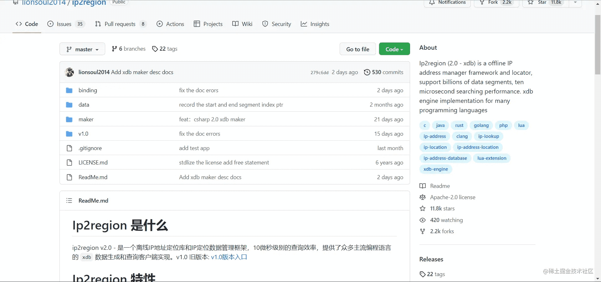 这里,要着重介绍一下Ip2region项目。