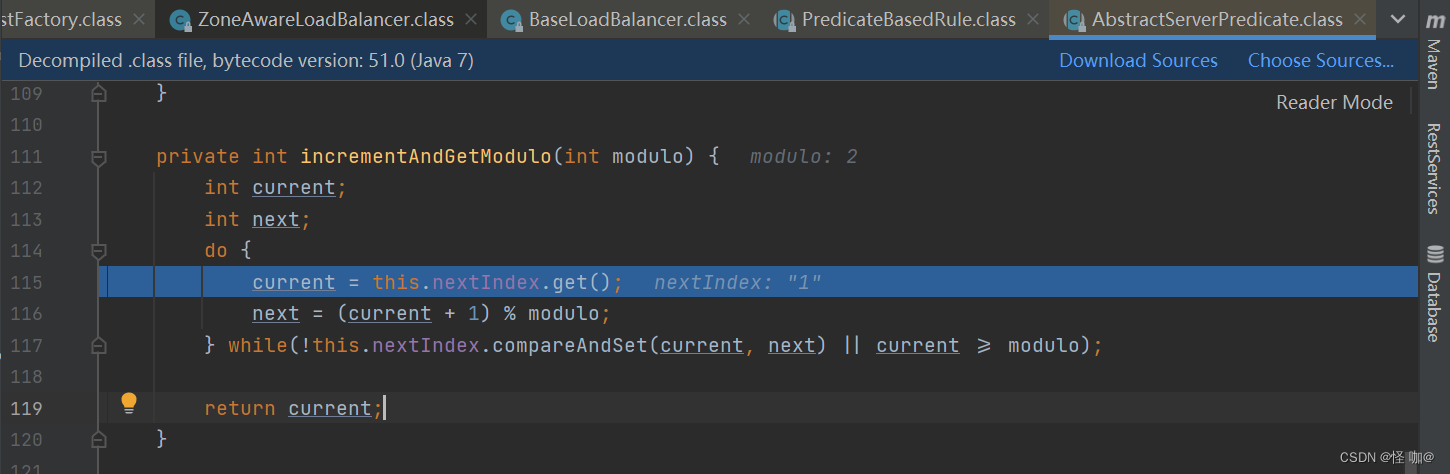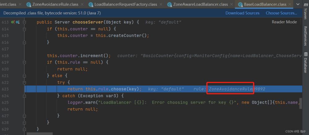 ZoneAvoidanceRule:继承PredicateBasedRule,他是没有重写choose方法的,这时候就进入到了父类的choose方法。