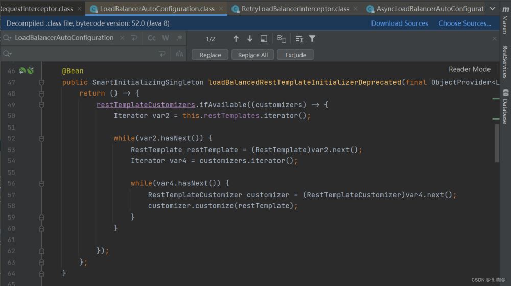 还是在这个类当中:org.springframework.cloud.client.loadbalancer.LoadBalancerAutoConfiguration