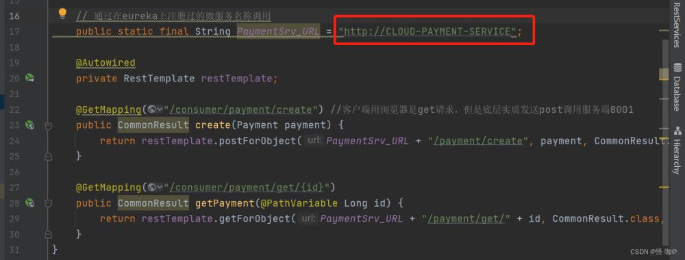 return restTemplate.getForObject(uri "/payment/lb", String.class);