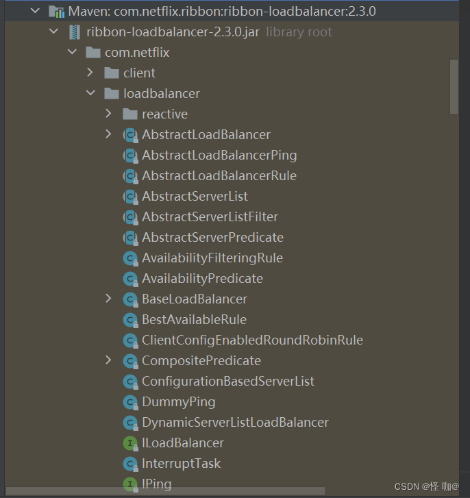 这些算法类都在如下包当中,一般我们只要引入Eureka、zk、consul三个其中一个注册中心的依赖,就会附带Ribbon的依赖,Ribbon依赖就会依赖ribbon-loadbalancer包。