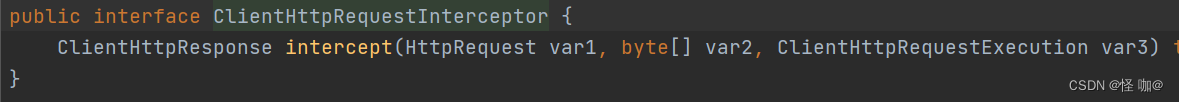 RestTemplate中有一个属性是List<ClientHttpRequestInterceptor> interceptors,如果interceptors里面的拦截器数据不为空,在RestTemplate进行http请求时,这个请求就会被拦截器拦截进行,拦截器需要实现ClientHttpRequestInterceptor接口,接口就一个方法,需要实现以下方法: