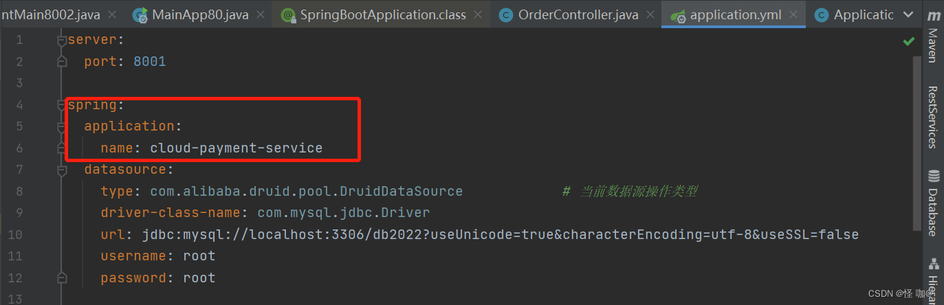 4.调整8001服务和8002服务,这两个服务是提供者,新增一个接口,来进行测试使用!