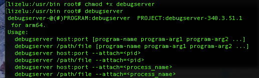 赋完权限后,你就可以使用debugserver命令来开启debuserver了,如下所示: