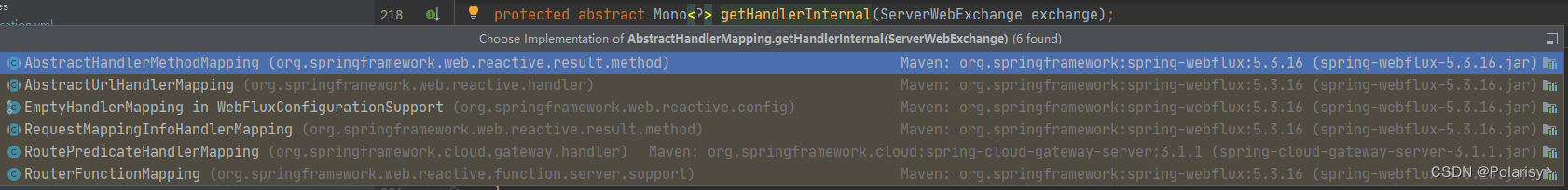 可以分别去每个实现方法中断点查看不难找到RoutePredicateHandlerMapping就是我们需要的,通过名字可以猜到就是用来处理路由转发的