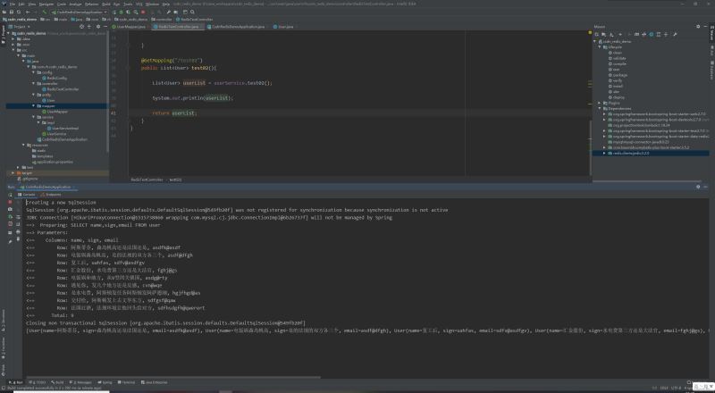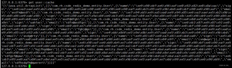可以看到redis中多出了user::cache这个键,这个就是我们做的缓存了(编码格式问题导致这么显示)