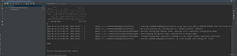 在test中写一个测试方法,测试是否能够连接,返回值为pong