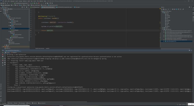 可以看到,第二次调用方法,并没有连接数据库,没有操作数据库的语句,这表示我们成功的从缓存中取出了数据。