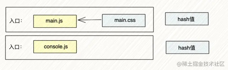 可以看出,main.css修改后只会影响main.css得hash值,也就是自己的hash值