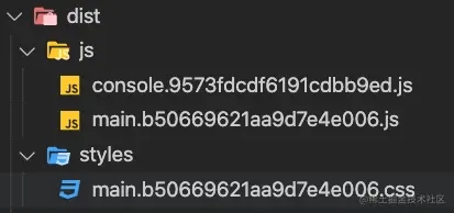 可以看到,每个文件的hash值都不一样,每个文件的hash值都是根据自身的内容去生成的,那我们现在修改一下main.css: