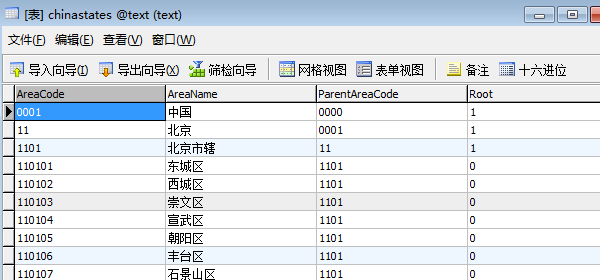 //填充省的方法,如何在表里查询 出省的代号例如:北京0001、天津0001,中国下面所有省都是0001开头的