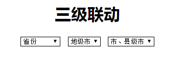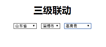 <!doctype html> <html lang="en"> <head> <meta charset="UTF-8" /> <title>Document</title> <script src="jquery-1.11.2.min.js"></script> <script src="sanjiliandong.js"></script> </head> <body> <div id="sanjiliandong"> <!--在这里使用三级联动插件--> </div> </body> </html>