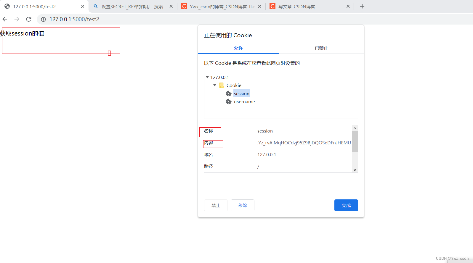 return 'hello ywx'3、获取session值