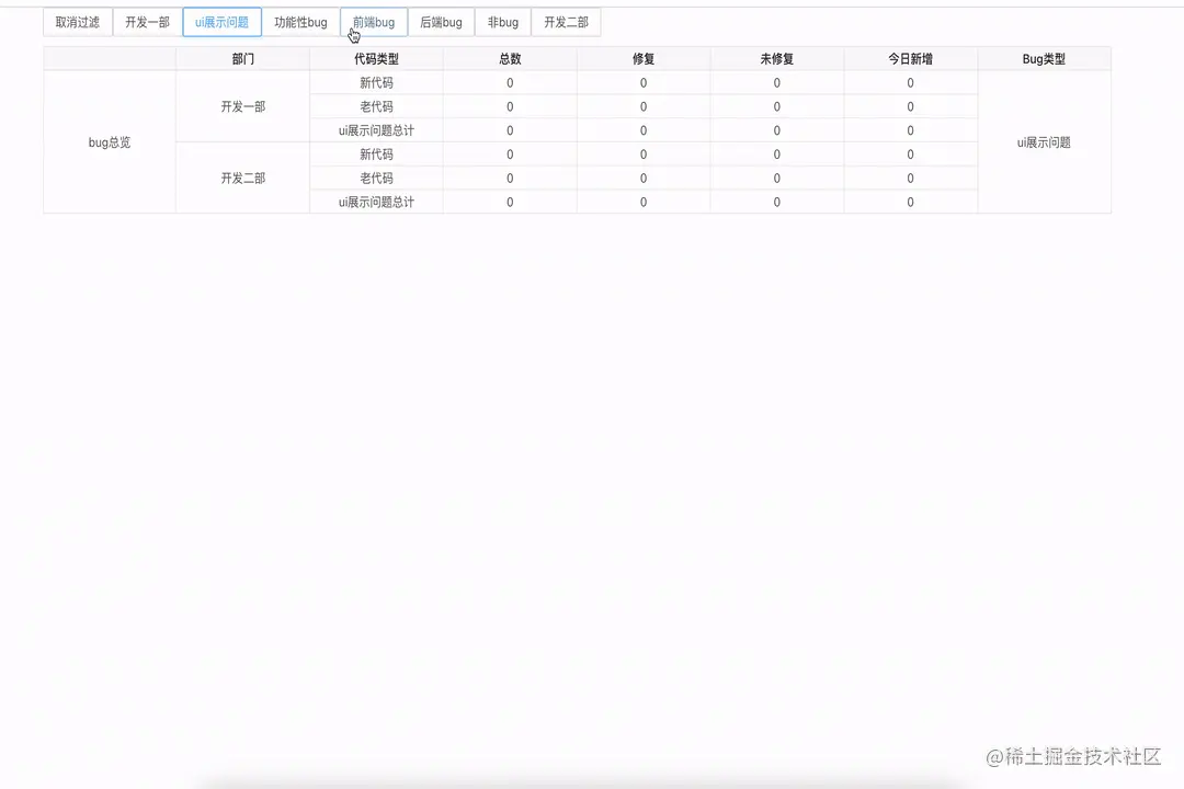 后端会返回给我们一个数组,数组的每一项格式是这样,在这个需求里,我们需要对 title,department,bugType 这三个字段相同的值的单元格进行合并