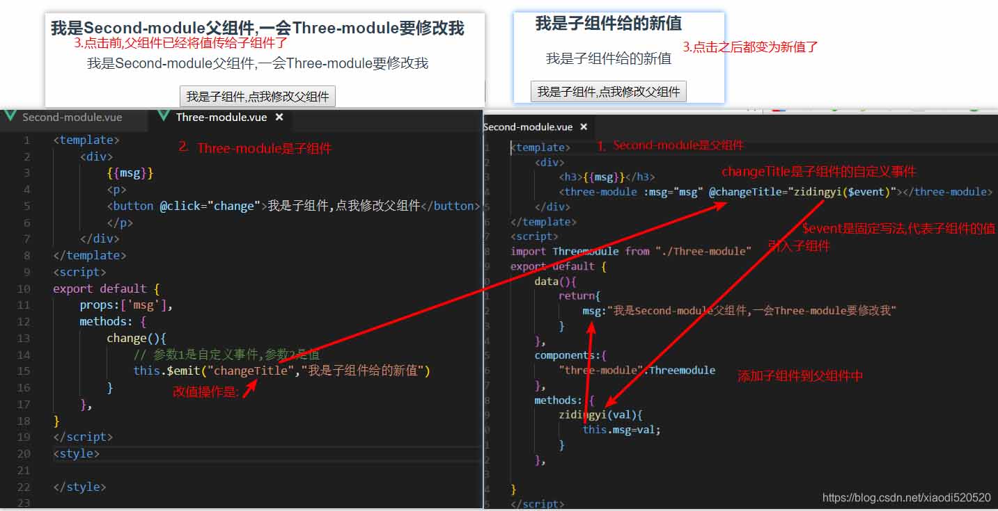 同时,也要了解子组件同步修改父子组件的值,操作如下: