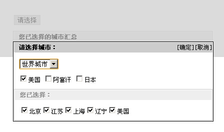 这是一款很棒的全国城市选择效果,添加城市时先添加组:找到id是"selectSub"中select标签下,添加option标签,value属性递增,找到id是"selectSub",按照原有格式添加div,其id属性递增;然后添加二级副选框选项:复制id是"selectSub"下任意input标签,粘贴在需要添加的位置即可,你想扩展的话,配合动态语言完全可以将城市从数据库中读取出来。