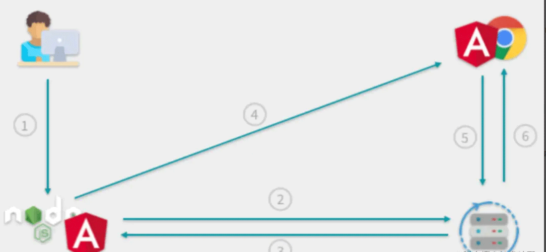 - 用户向部署了 Angular 服务器端应用的 Node.js 服务器发起页面请求