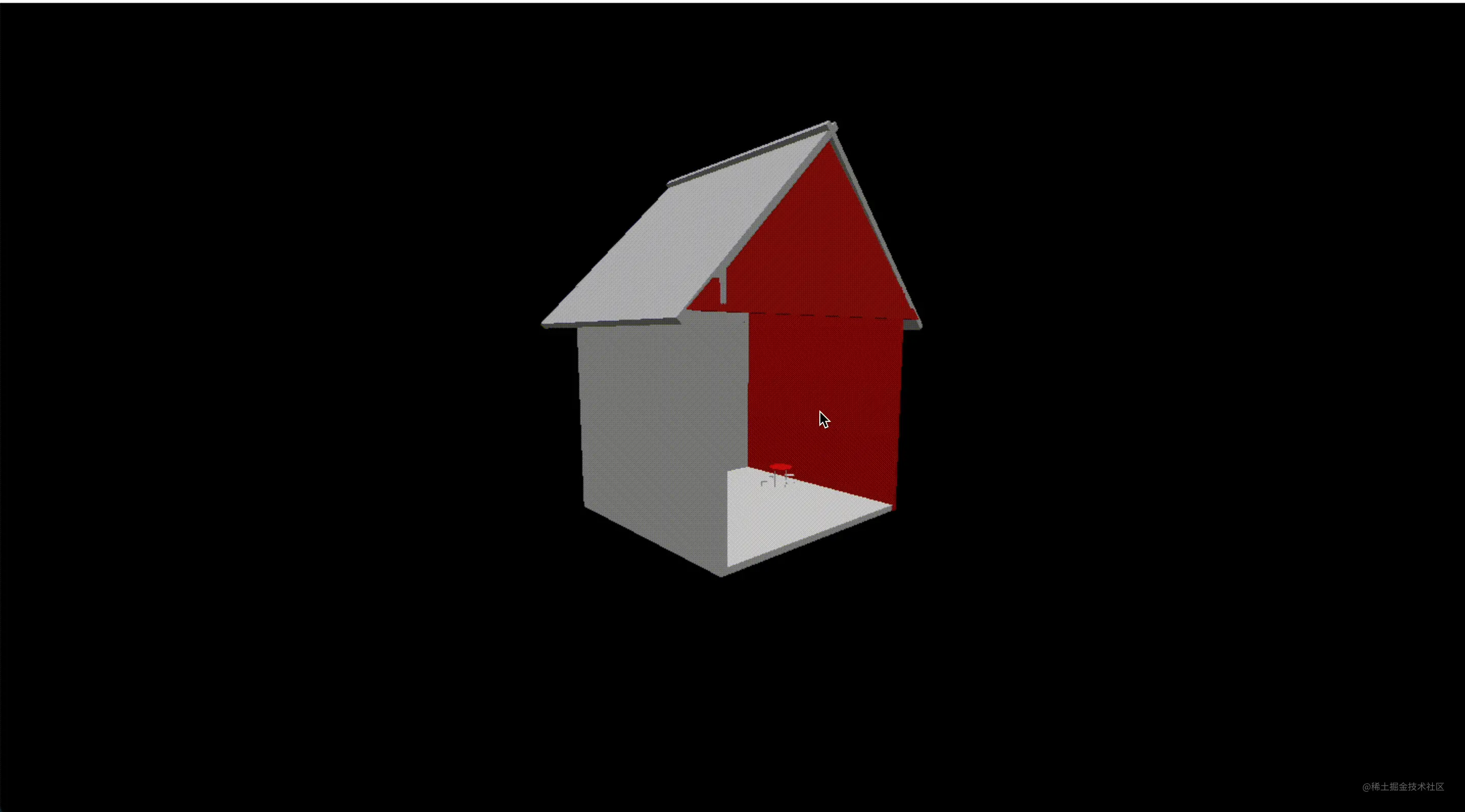 我们已经想场景中添加了房屋模型,然而此时却看不到房屋,因为创建房屋模型所选用的材质是 MeshPhongMaterial 材质(一种用于具有镜面高光的光泽表面的材质),仅在光源条件下可见,所以我们需要添加光源。