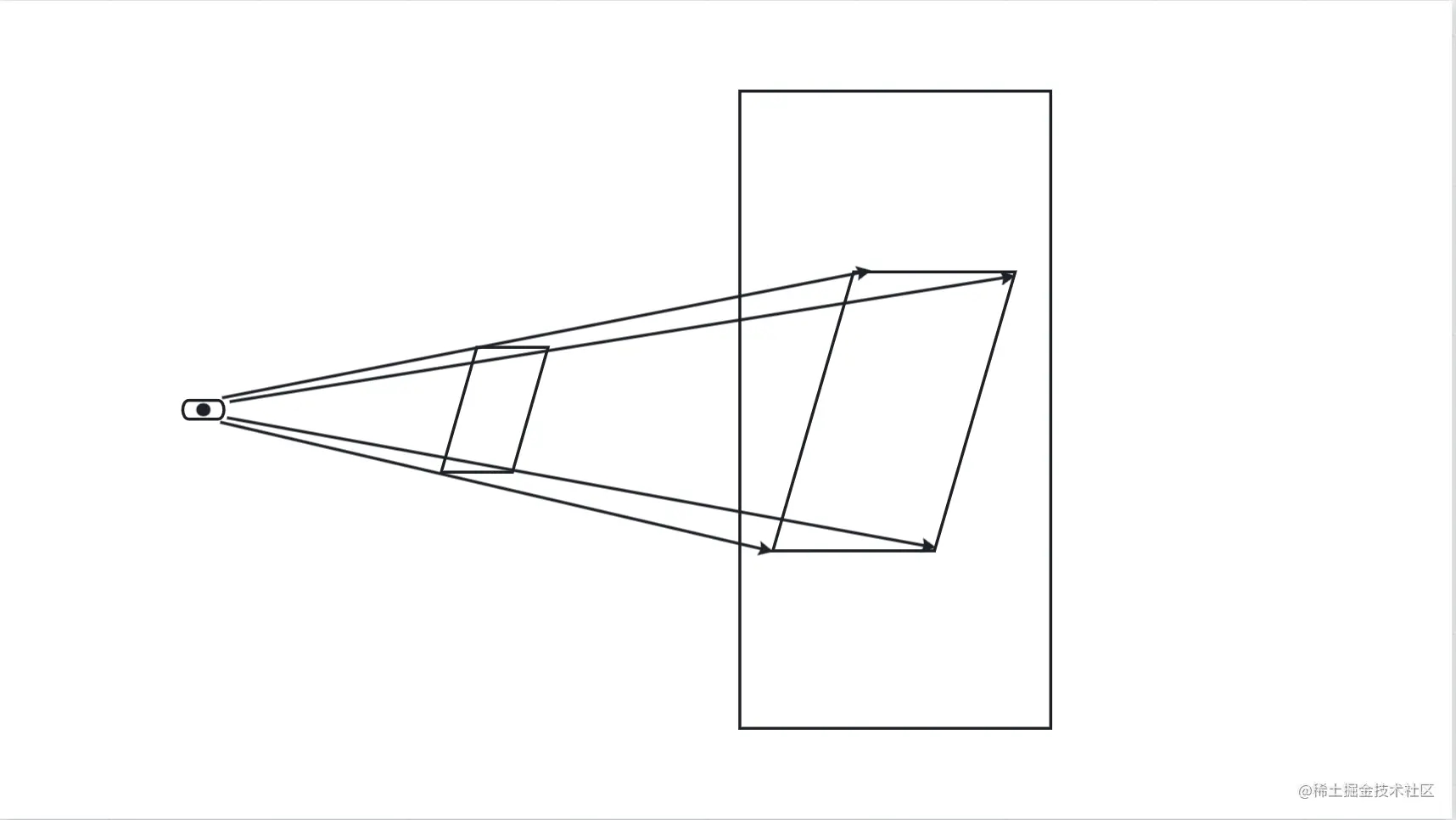 透视相机是模拟人眼的视觉,近大远小(透视)