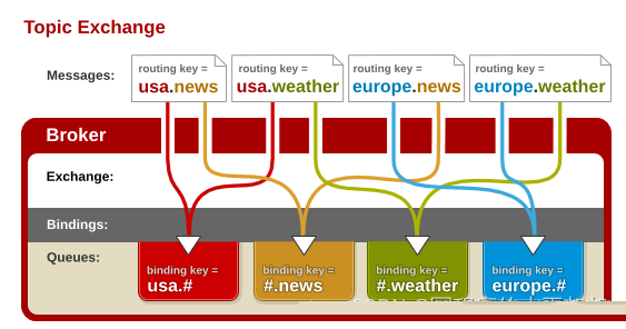 return BindingBuilder.bind(queueMessages).to(exchange).with("topic.#");