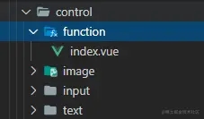 所以我们还需要在相应文件夹下面创建相应的组件,这里我是在components文件夹下创建了control文件夹,control文件夹下放我们对应需要渲染的组件,这里我创建了四个,function、image、input、text,分别对应内容需要转化、图片展示、最基本文字、输入框。根据具体的业务创建不同的组件即可。