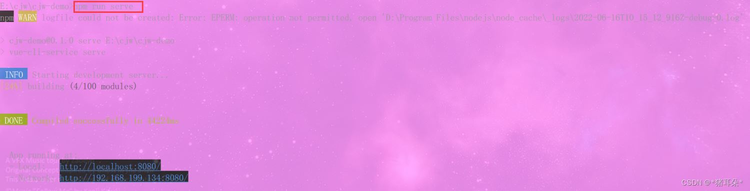 启动vue项目,也可以通过CMD命令行(以管理员身份运行)启动;