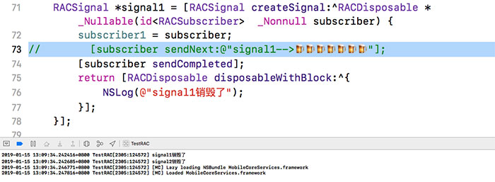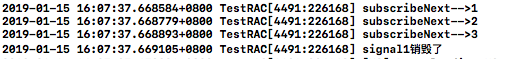 PS:注释signal1的sendNext方法,直接销毁了,所以每个singal必须有sendNext方法
