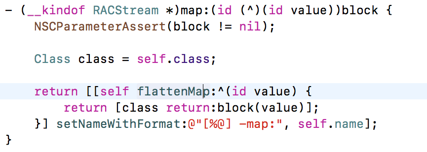 [[_textField.rac_textSignal flattenMap:^__kindof RACSignal * _Nullable(NSString * _Nullable value) {