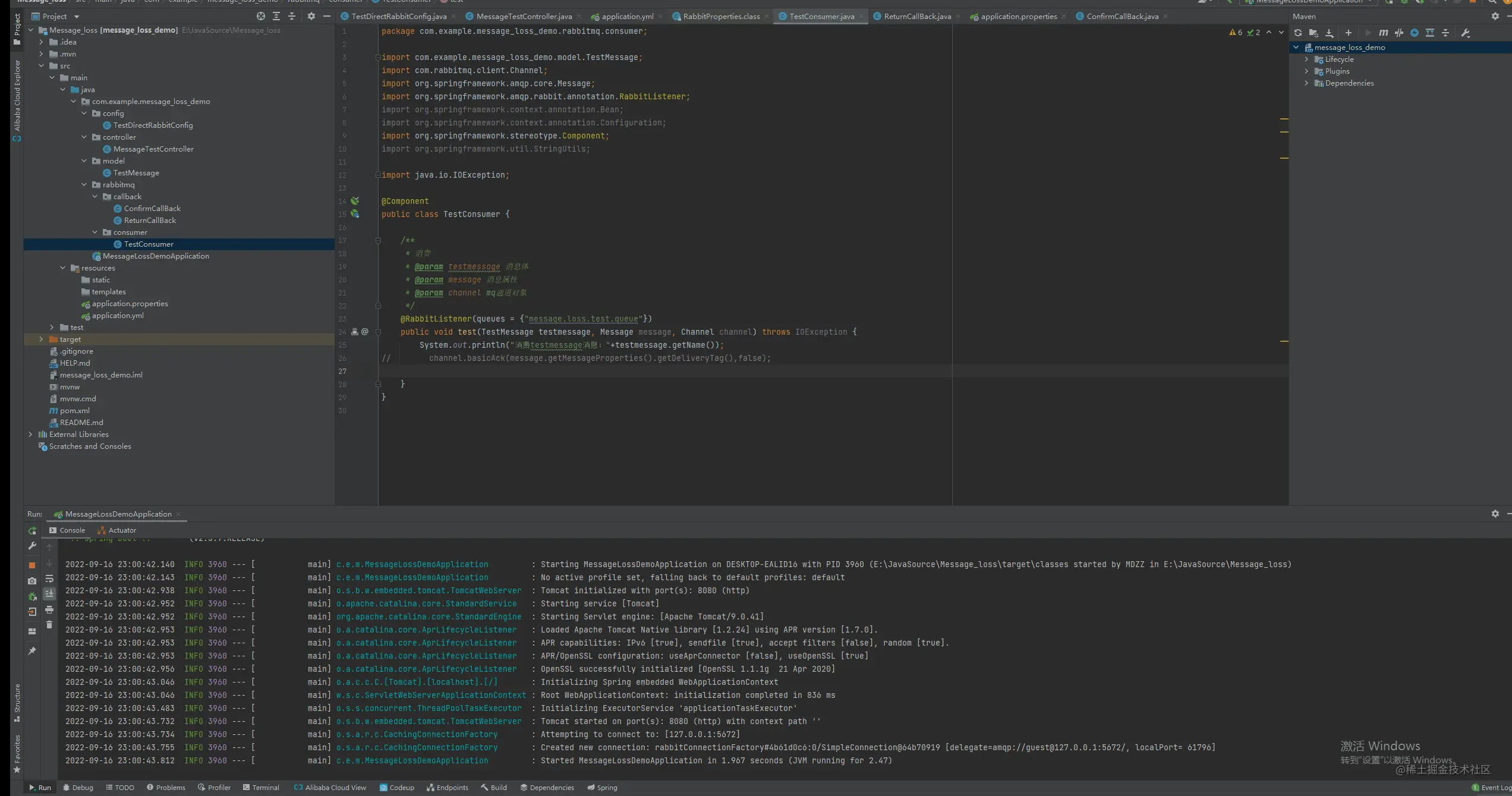 @RabbitListener(queues = {"message.loss.test.queue"})