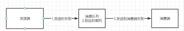 - 发送时失败,指发送端发送完消息准备到达消息队列的过程中,因网络波动、消息队列服务宕机等,消息队列服务无法接收消息,所以导致了丢失。