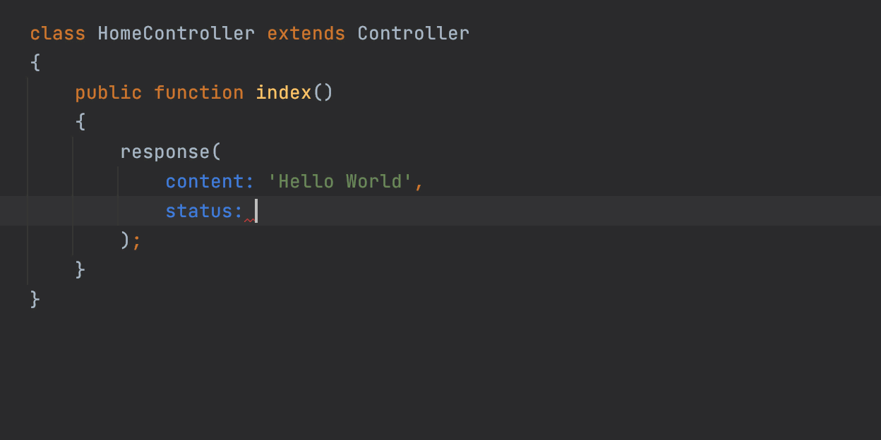 让我们看一下response()Laravel中的助手。它以HTTP状态代码作为第二个参数。