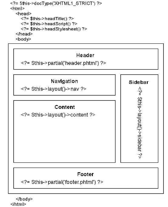 Zend Framework 的文档中用一个视图表示了页面布局的应用。