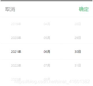 分别点击开始日期和结束日期选择时间(底部弹框):