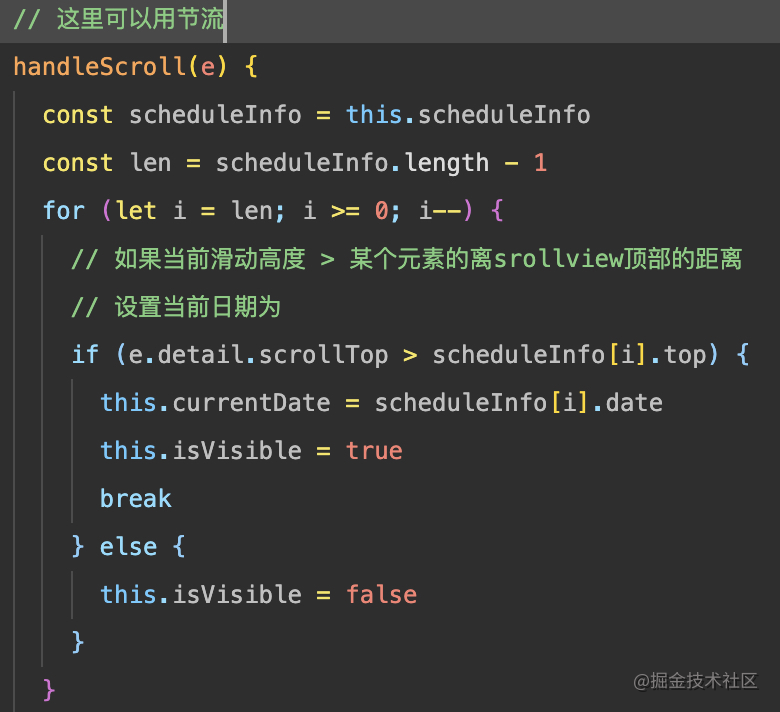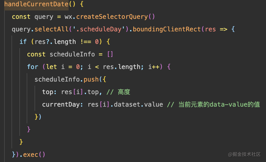 - 该函数为处理每一个scheduleDay元素距离scroll-view顶部与当前日期的数据
