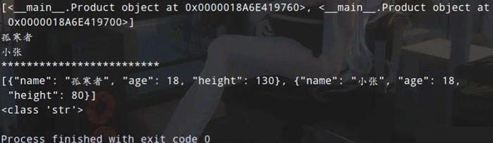 __init__()方法中的第二个参数,即d。而这个d其实就是包含了这个JSON文档的字典对象,我们又在__init__()方法中将d赋值给了__dict__(就相当于你一个个写类里面的属性名=属性值),这就会将字典里的key和value映射为Product对象里的属性和属性值。