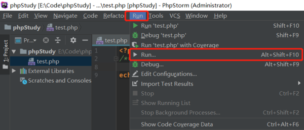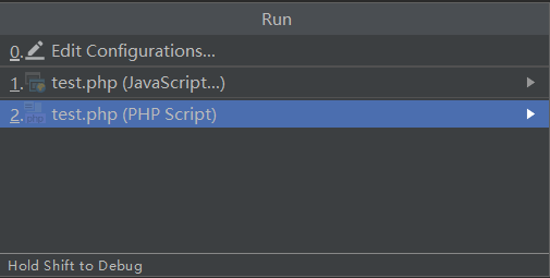 在出现的弹窗中,有两种运行模式:JavaScript表示在浏览器中运行,PHP Script表示在PhpStorm中运行。