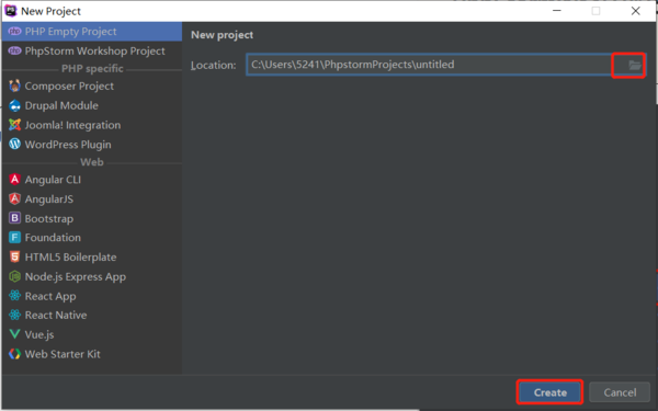 先选择左侧的项目类型,在右边选择项目的所在目录,强烈建议不要放在C盘。