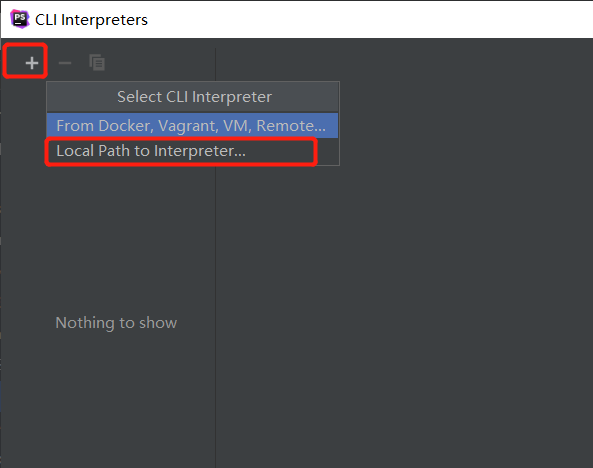 在出现的弹窗中,点击左上角 ,选择Local Path to Interpreter...