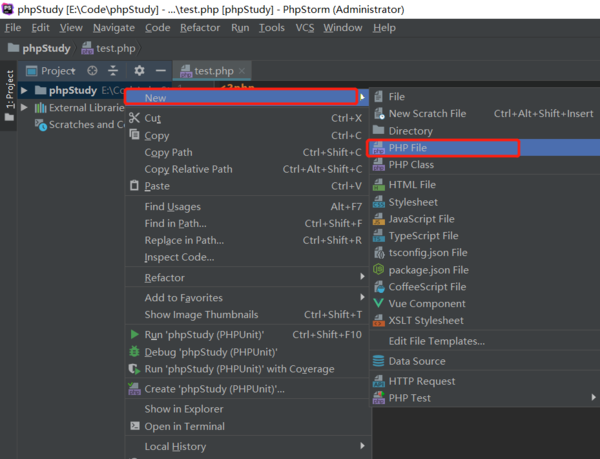 新建php文件,右键点击项目,选择New > PHP File进行新建。