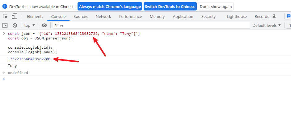 const json = '{"id": 1352213368413982722, "name": "Tony"}';