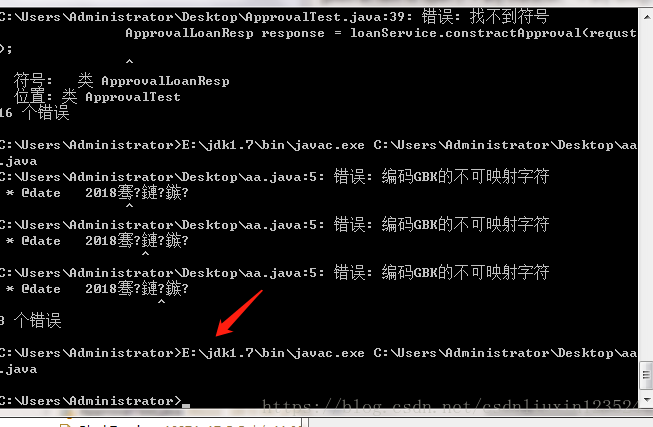 解释:E:\jdk1.7\bin\javac.exe 是javac.exe的安装目录,其实找到jdk就行了。C:\Users\Administrator\Desktop\aa.java是刚才写的测试类,把他拷到桌面的位置。